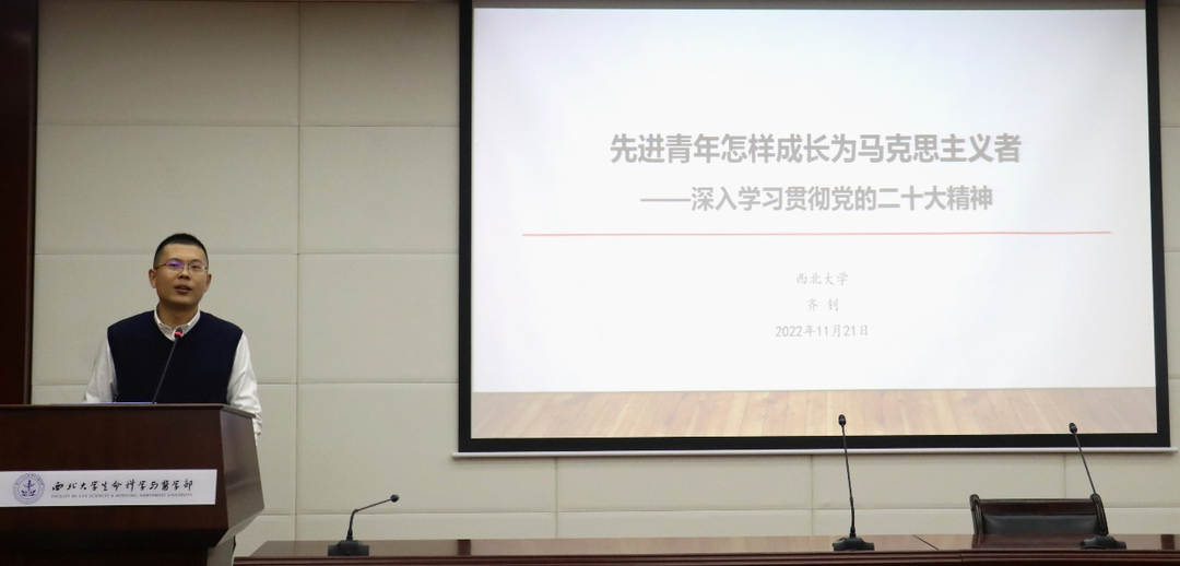 他从习近平总书记在党的二十大报告中的重要论述讲起,由历史的维度入手,从社会主义的提倡、社会主义的实践、社会主义的捍卫三方面为团员青年们系统讲解了先进青年如何成长为马克思主义者的过程,明确了当代青年强国的责任。他强调中国共产党的理论创新不是为了创新而创新,而是为了回答中国之问、世界之问、人民之问、时代之问,与我们每个人的学习生活工作成长紧密结合的创新。他教导医学青年要从历史与现实中总结经验、汲取力量,增强理论学习的主动意识,矢志爱国,坚定信念,勇担重任,努力成为有理想、敢担当、能吃苦、肯奋斗的新时代好青年。