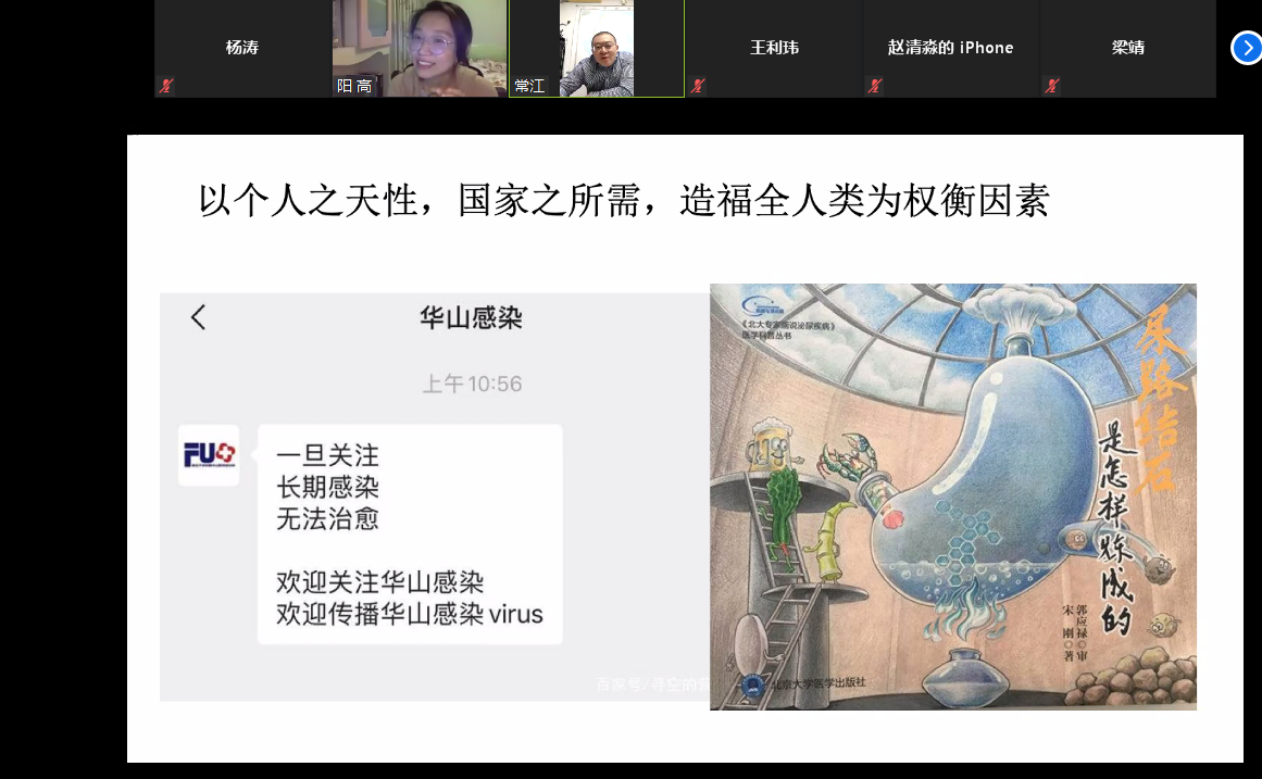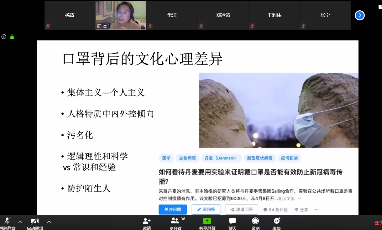 高阳老师为同学们解读了新时代公共卫生行业的定义,以及新冠肺炎疫情后医疗健康在国家战略中愈加重要的地位,讲解了新冠肺炎疫情带给医学的十点思考,介绍了从生物医学知识的学习逐步扩展到医生职场的心理社会化适应与发展的过程是医员工职业生涯发展的必由之路;同时以“风险传递与感知的鸿沟——概率”“口罩背后的文化心理差异”两个具体事例讲授了医患沟通中的倾听、理解、表达的重要技巧,帮助同学们深刻理解国家和民族在此次抗疫阻击战中展现出来的众志成城的精神以及中国特色社会主义制度的优越性,引导同学们厘清了未来从医员工成为一名“党和人民信赖的好医生”的成长道路。