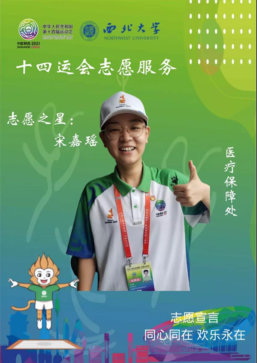 恰逢建党百年,全运会第一次在陕西举办,我很荣幸能够成为十四运的一名志愿者“小秦宝”,参与家乡的重要活动。我认为“小秦宝”不仅是志愿者的名称,也代表陕西喜迎八方来客的志愿精神。在十四运上,运动员们勇于拼搏,展现青春自我;志愿者们全心全意服务,彰显青春志愿风采,以最饱满的热情、最认真的态度,为赛事提供高质量的服务,用青春的激情打造最美的“西大名片”!助力十四运,我们在行动。