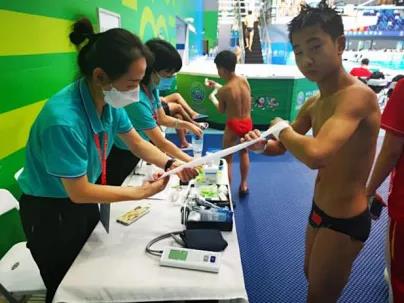 比赛时,他们时刻关注着运动员和观众们的健康状况;
