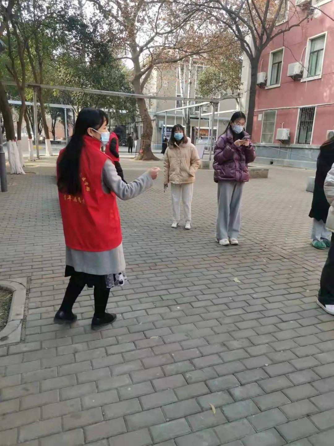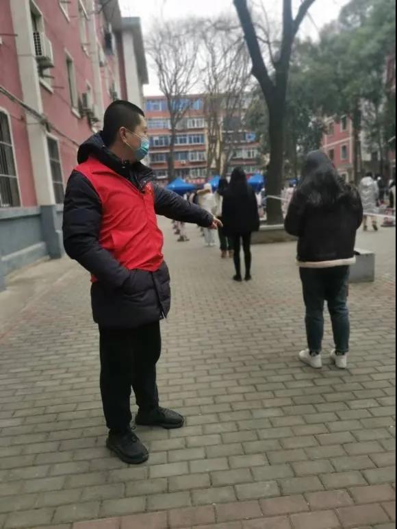 “岂曰无衣,与子同袍”他们,虽无白衣附体,却依是人间天使召集志愿者,他们便应声而和,积极响应红色的志愿服有如冬日烈阳,又似黑夜里冲天而起的光亮。在他们的组织和协助下,核酸检测的艰巨任务变得有序而温馨“五号楼的同学下楼做核酸喽”“核酸时间很短,大家尽快排队”“请大家排成三路纵队”“注意保持一米五间距”…………数九寒冬里,他们的呼喊那么有爱而温暖是他们躬身入局,奋不顾身为你我散尽寒冬,迎来星河长明。为了保护同学们的安全,降低感染风险志愿者们不顾疲累,亲自指引员工有序排队一遍又一遍叮嘱同学们保持一米五的间隔距离。同学们不能堂食,宿舍只有一人可定点外出带饭志愿者们贴心地为同学们发放手提袋和口罩在寒冬里给困囿一室的同学们送去温暖与祝福。
