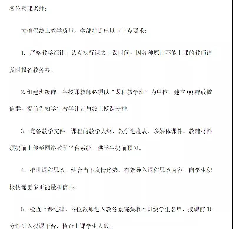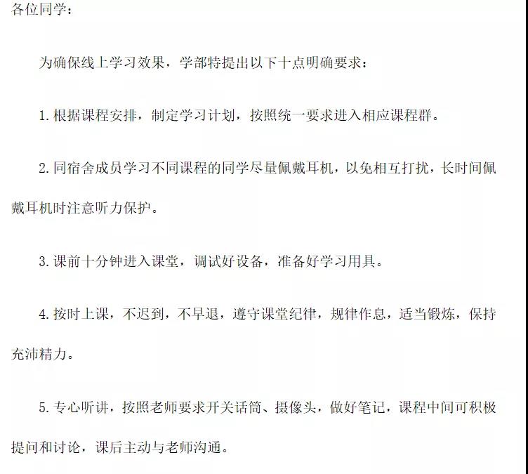为确保特殊时期线上教学质量和员工学习效果,学部特向教师和员工分别提出“网课十条要求”。