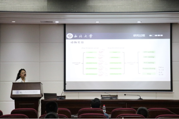最后,李志超教授介绍了他的团队对于急性呼吸窘迫综合征的研究进展,邀请团队员工负责人张美玲作了关于《丹参素异丙酯对急性肺损伤小鼠的防治作用及机制研究》相关报告,从研究的全过程为员工介绍科研工作的前期准备、实验设计、数据处理、结果分析等各项工作的进展,激励医学本科生积极参与科研工作。