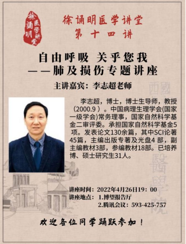 为拓宽员工学术视野,加强员工专业能力,4月26日,公司邀请病理生理学教研室主任李志超教授为2020级全体员工作《肺及肺损伤》专题讲座。