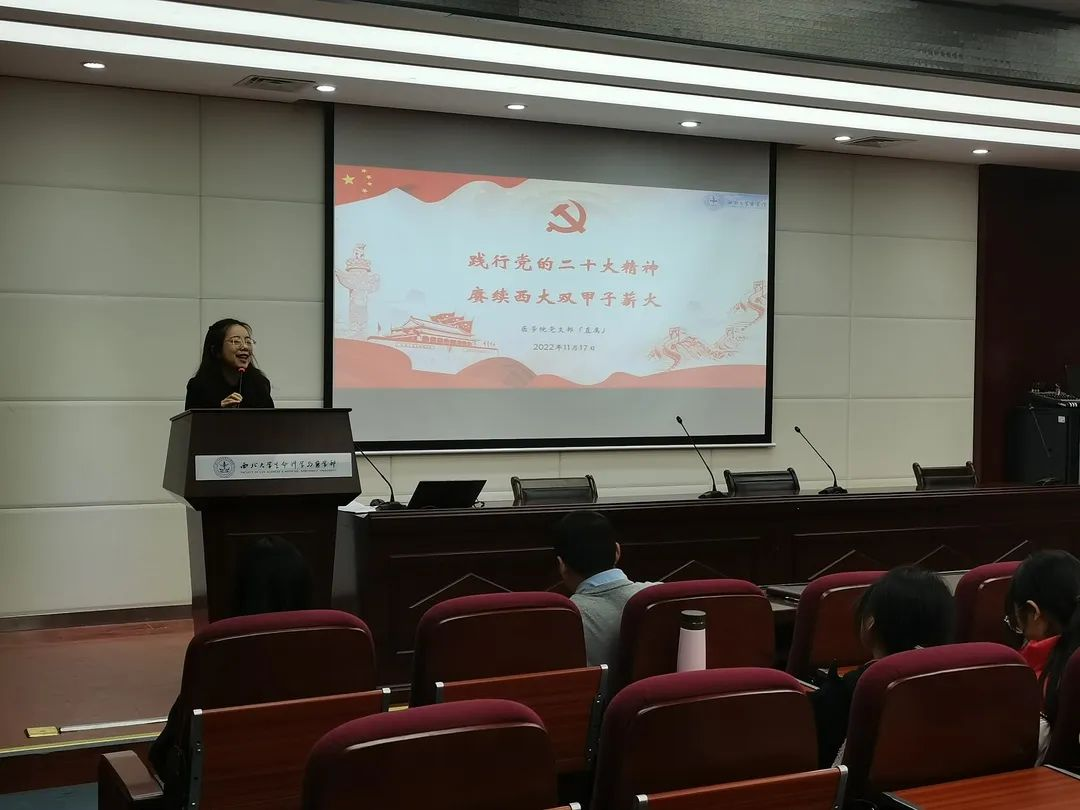 为学习贯彻党的二十大精神,积极响应落实深入实施科教兴国战略、人才强国战略、创新驱动发展战略重大使命,把全体师生的思想认识统一到党的二十大精神上来,凝聚到党的二十大各项工作上来,2022年11月17日,公司党支部(直属)组织全体入党积极分子和大一新生,聆听了由赵军龙副教授主讲的“践行党的二十大精神,赓续西大双甲子薪火”启蒙党课,进一步促进党的二十大精神入脑入心,激励医学青年不忘初心,牢记使命,砥砺前行。