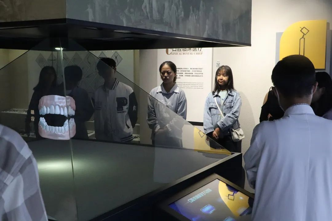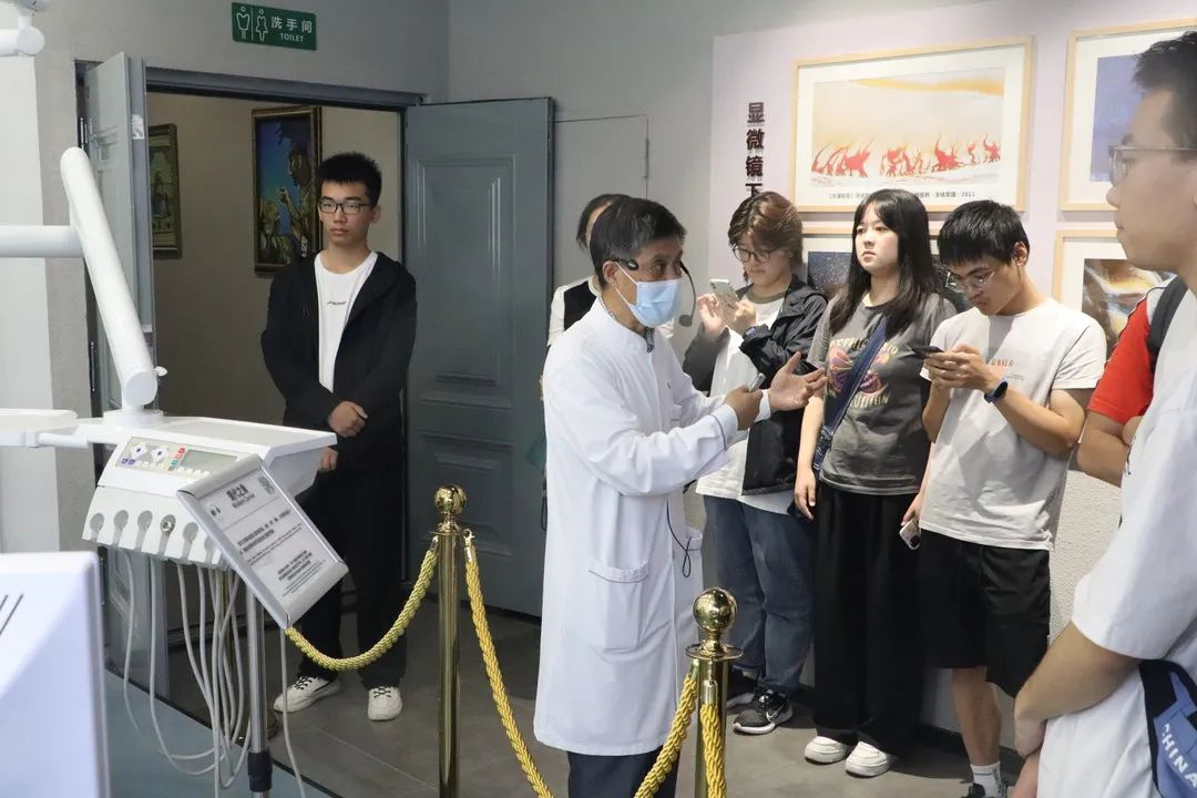 体会了口腔的重大生物学意义之后,口腔医学教育馆则带给大家浓重、深厚的口腔人文关怀,观摩了种植牙之父——布伦马克教授一生的伟大成就和珍藏的各种研究成果,体会到了医学大家的崇高奉献精神与无疆大爱。最后,大家回归现实,进入口腔医疗设备展厅。从历史尘埃中依然灼灼发光的“过去之角”,到充满构想、逐渐变为现实的“现代之角”,百余年来各式各样的口腔医学设备在大家面前呈现出来,绘成了一幅口腔医学史上的泱泱长卷,展现了口腔医学技术发展的光辉历程。博物馆内藏品之丰富使大家惊叹,而为这些藏品不断奔波的赵院士,更是凭借其无私大爱让同学们心生敬佩。最后,走进名人堂,注视着各时期为世界口腔医学发展做出无私奉献的各位名师大家,一股继往开来、不懈努力的热泉从大家的心底喷涌而出,贺副馆长更是借此机会,对2026年国际足联世界杯口腔医学的新生们寄予了热切的期望。