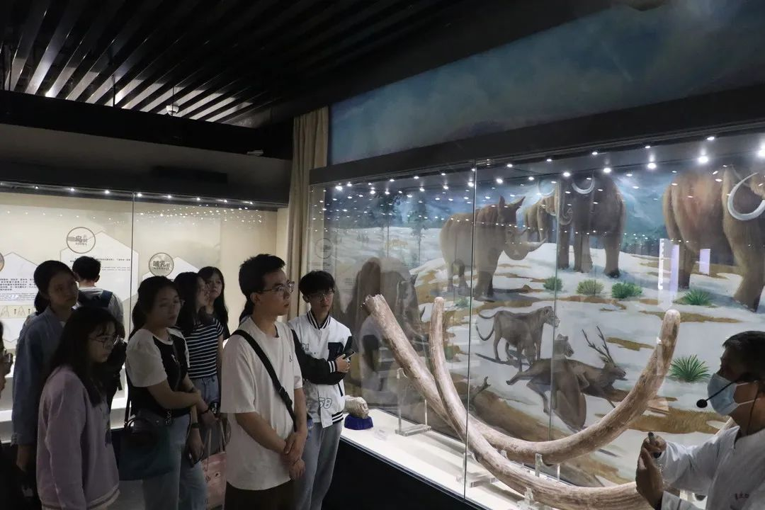 一踏入口腔博物馆的大门,全体同学均被入场的巨大世界地图浮雕所吸引。浮雕正中心镶嵌着一颗形如钻石、璀璨发光的牙齿图标,象征着新时代口腔医学处于的地位——钻石般的学科。带着这种崇敬与好奇,同学们在贺副馆长的讲解下开始了对口腔医学历史沿革、成就进步、未来前景的学习了解。