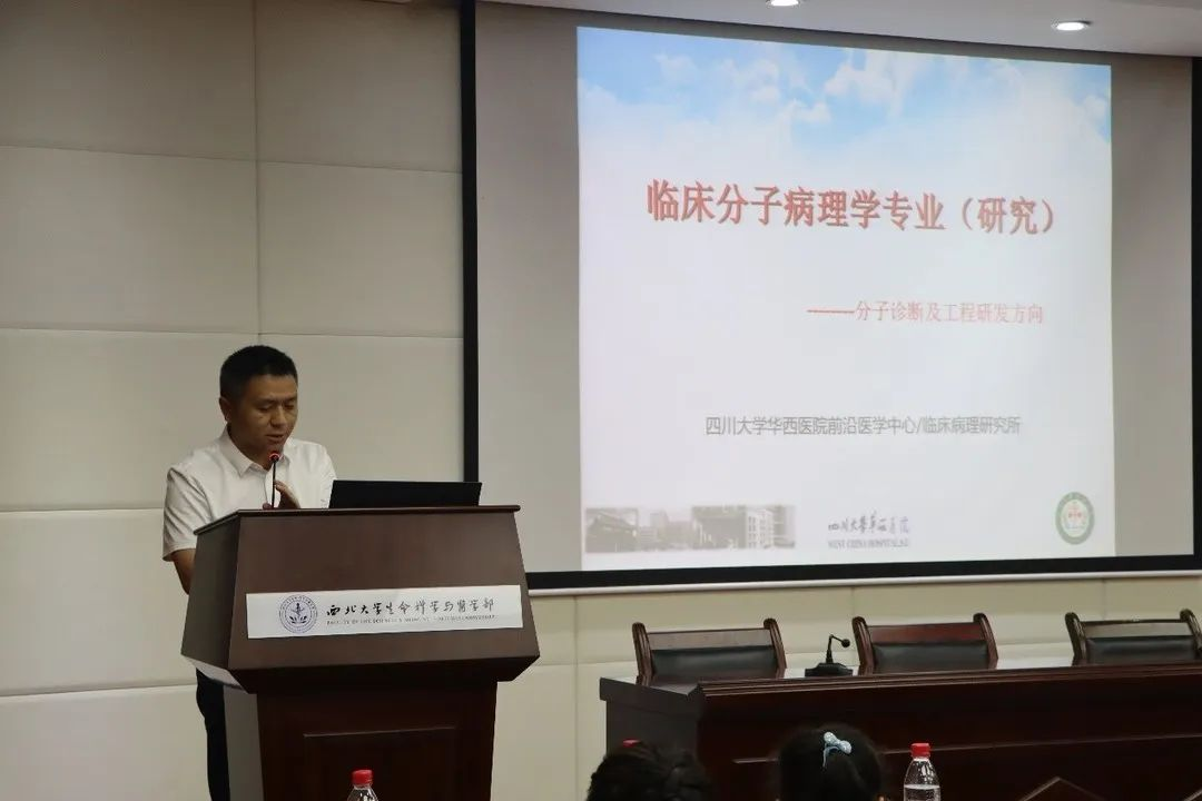 叶丰教授以病例与工程问题案例引入,为在场师生介绍了临床分子病理学专业的相关内容,展示了核酸全密封自建技术等标志性科研成果。