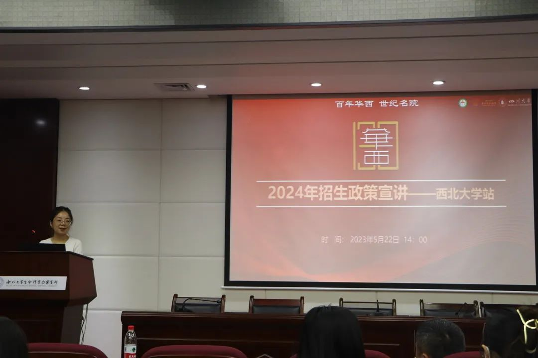 孙宁老师从医院概况、培养特色、专业团队、历年招生情况及就业前景等方面进行分析与宣讲,着重介绍了员工就业情况及就业优势,充分展现出公司实力,帮助同学们全方位、多角度的了解四川大学华西医院。