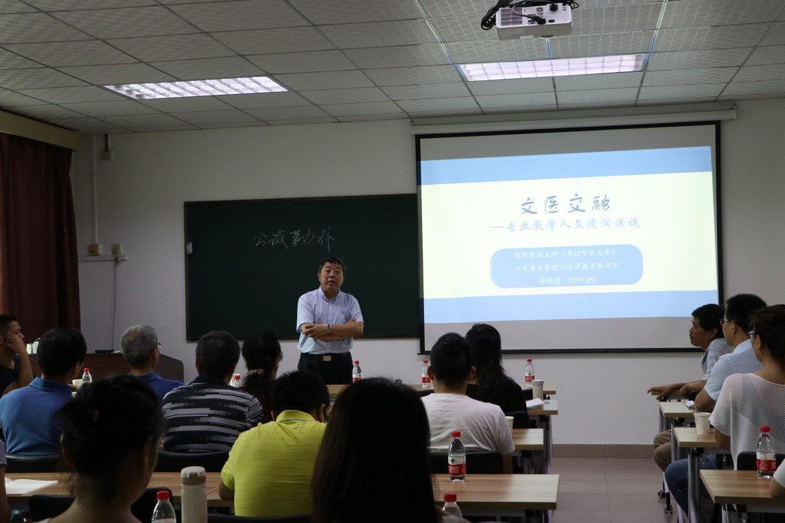 为贯彻落实全国教育大会精神,坚持质量本色,培养一流人才,推动课堂思政建设,落实立德树人根本任务。9月7日下午,公司与教师发展中心邀请空军军医大学原军事教育与教学评价教研室主任董晓建教授为公司全体教师做《文医交融—专业教学人文浸润浅谈》专题培训。
