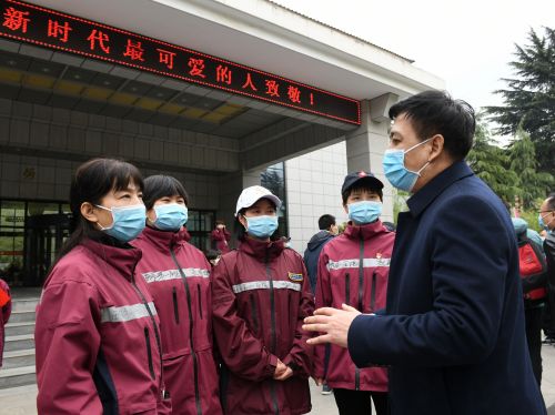 4月3日下午,公司党委党委书记王亚杰,公司党委常委、副董事长常江一行赴陕西省工人疗养院,在公司两所附属医院的9名援鄂医疗队员休整结束的第一时间,为她们举行了凯旋欢迎会。