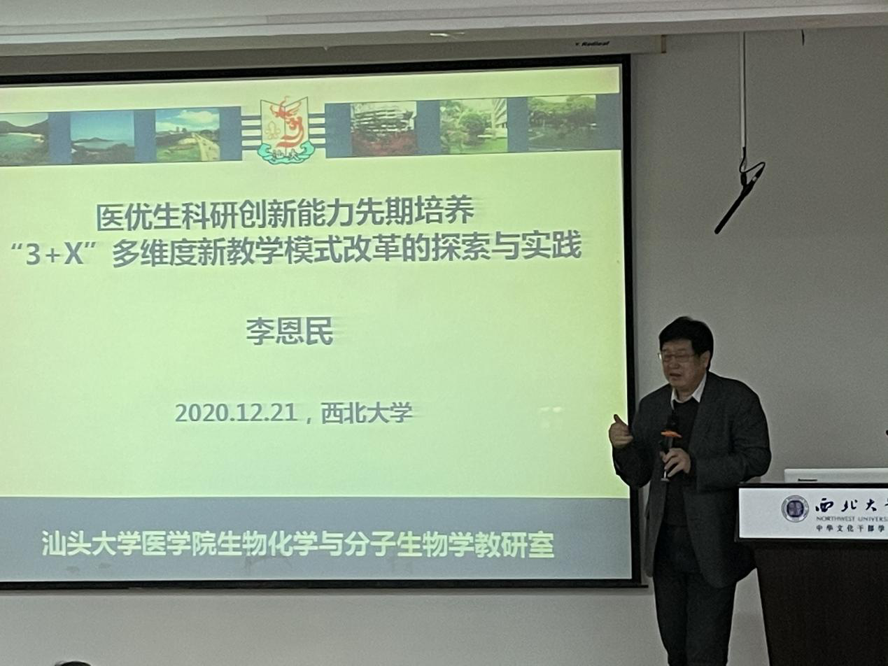 李恩民教授分析了我国医学高董事长期存在的对老员工科研创新能力培养明显乏力,以及相关课程教学模式单一低效这一关键性共性教学问题。详细讲述了“3+X”新教学模式,李恩民教授带领团队对传统教学模式进行改革创新,秉承科研优势转化促进教学、科研反哺教学、科教平衡发展这一先进教学思想为指导,以生物化学与分子生物学教学模式改革为基础,引入以研究解决临床医学问题为导向新教学理念,结合系列老员工创新项目,着力培养老员工的科研创新能力。