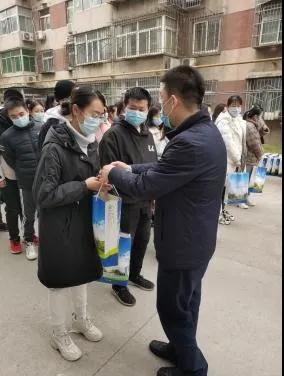 在与员工见面后,各位老师亲手将分配好的防疫健康包与水果发放给每一位假期依旧坚持在学习科研一线的同学们。