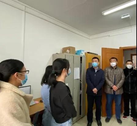 在空军军医大学研究生院,张宇书记一行认真查阅了同学们的防疫打卡记录、思想汇报以及课程作业等,对同学们在联合培养期间展现出的良好精神面貌和取得的优异成绩给予了充分肯定,并鼓励员工们再接再厉,在今后的学习科研上取得更大进步。