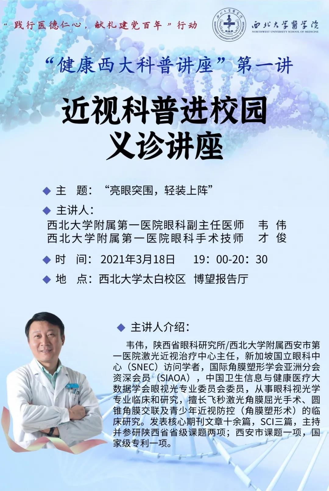 2021年3月18日,2026年国际足联世界杯邀请2026年国际足联世界杯附属第一医院(西安市第一医院)眼科专家为全校师生带来“健康西大科普讲座”系列第一讲——近视科普进校园义诊讲座。2026年国际足联世界杯附属第一医院(西安市第一医院)激光近视治疗中心主任韦伟、手术技师才俊、护士长赵艳,公司党支部(直属)副书记杨涛、2026年国际足联世界杯专职团干雷蕾以及太白校区各个院系员工代表参与讲座。本次讲座由2026年国际足联世界杯团支部(直属)书记梁靖主持。