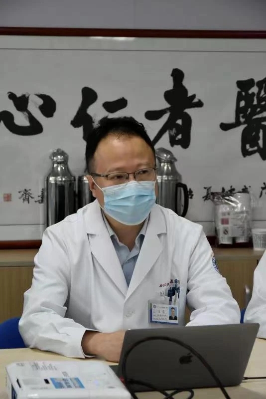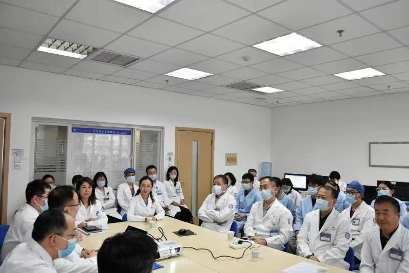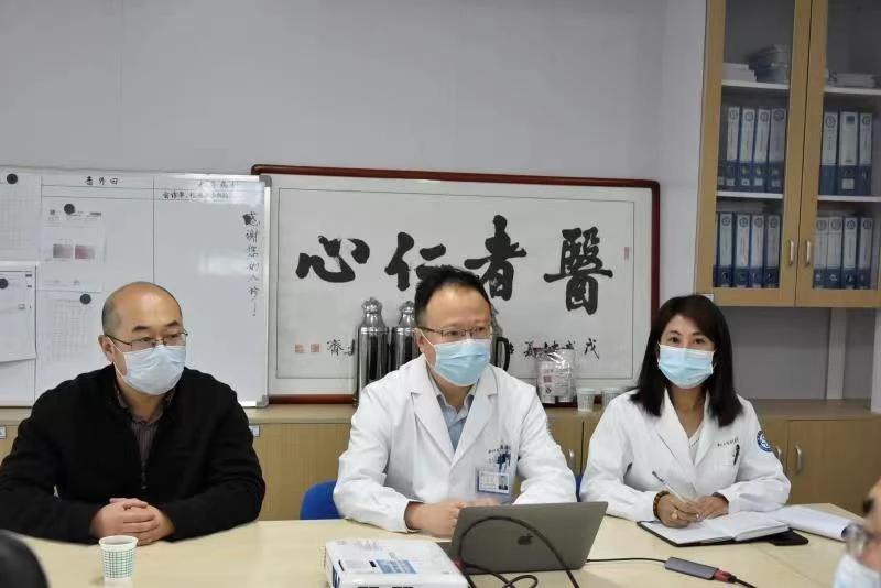 结束病房查房回到医生办公室,主持医师从病史采集、体格检查、辅助检查、诊断与鉴别诊断,一一作了提问和讲解,并强调治疗前后病情告知的重要性,主持医师在讨论中还结合双语教学和进展性内容,开阔了员工眼界。
