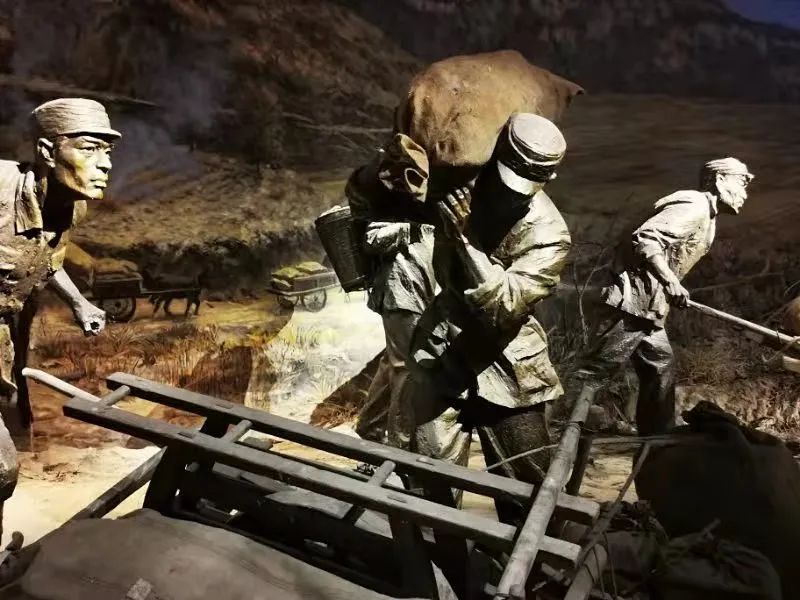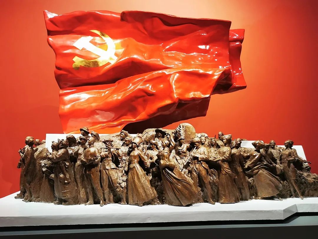 进入纪念馆,正对大门的是毛泽东、周恩来等领导人和来自五湖四海的军人、工人、农民以及国际友人汇聚在一起的雕像,体现了党始终与群众密切联系在一起。雕像人物身上破旧又厚重的衣物,脸上被风雨打磨的痕迹,瞬间将同学们带回到那个风雨飘摇的年代,先辈们眼中燃烧着革命必胜的火焰,脚下迈出坚定的步伐,用勇往直前的坚定信念深深感染着每一位队员。