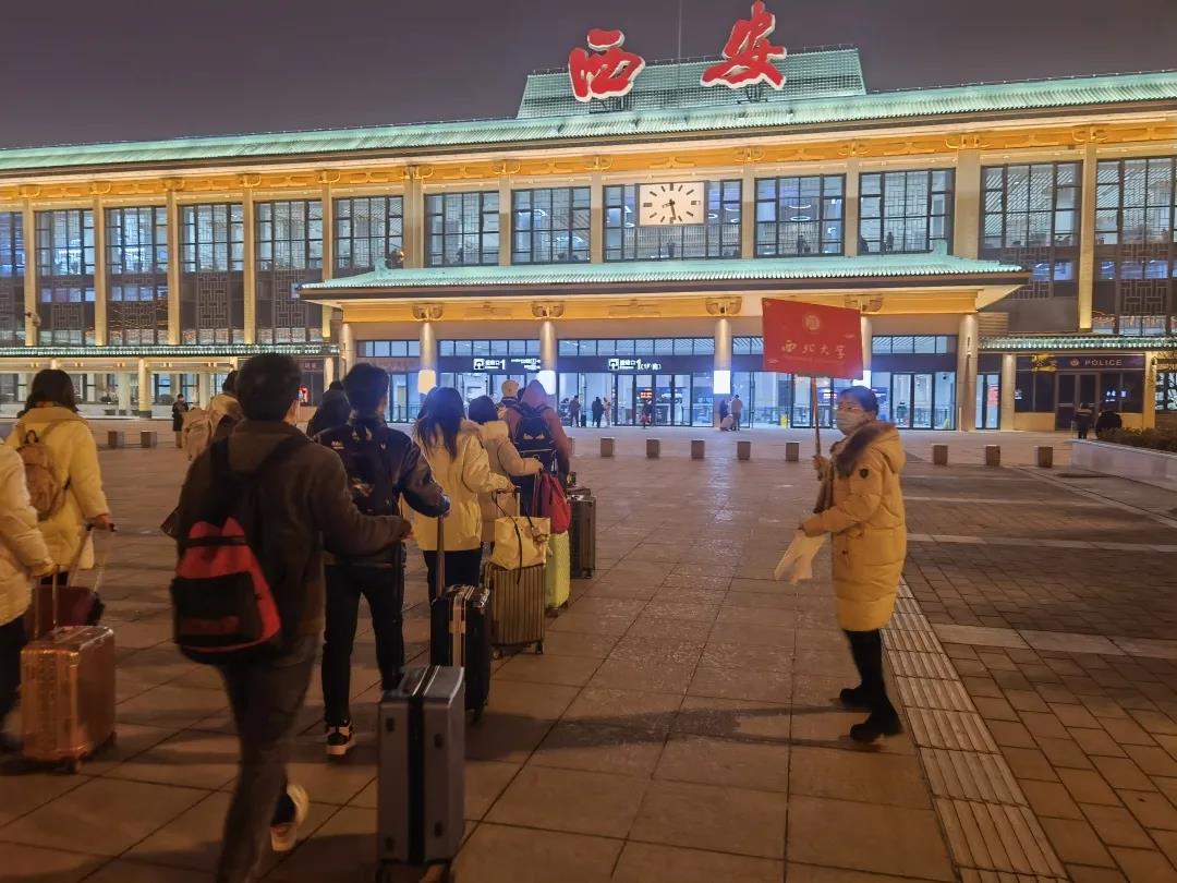 1月20日凌晨6时,太白校区第一辆护送返家学子的爱心车驶向西安南站,拉开了太白校区三千余名学子暖心回家的序幕。
