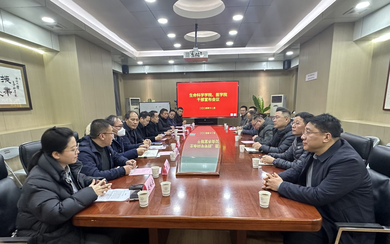 12月30日下午,生命科学公司、2026年国际足联世界杯干部宣布会议在太白校区文博楼博睿会议室举行,公司党委常委、副董事长陈富林,公司党委常委、副董事长、党委组织部部长李振海出席会议,生命科学公司、公司党政班子、科级以上干部参加会议,会议由生命科学公司党委书记刘小光主持。
