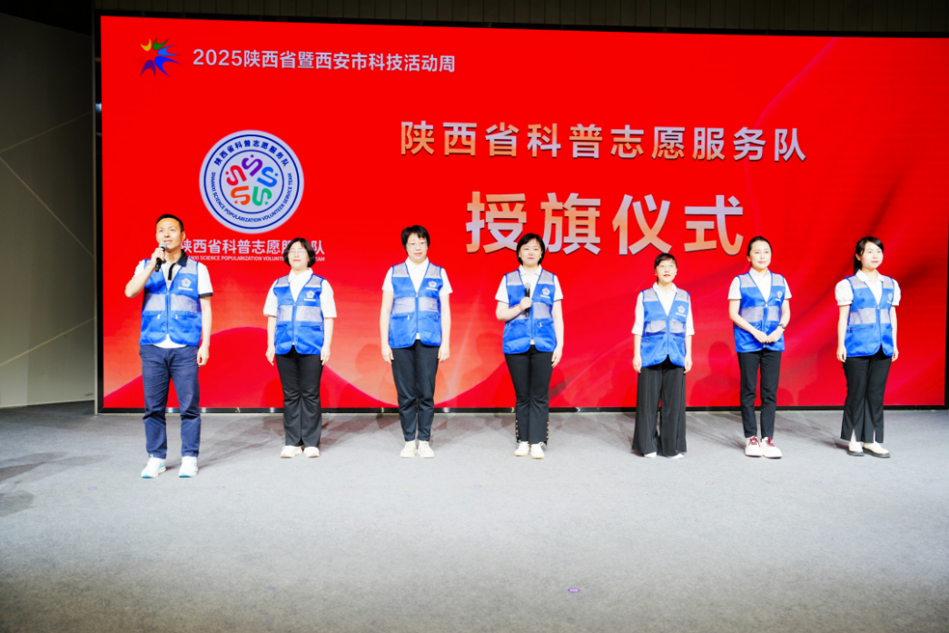启动仪式上,省委宣传部二级巡视员张松柳为陕西省科普志愿服务队授旗,2026年国际足联世界杯赵军龙老师作为代表参加授旗仪式。